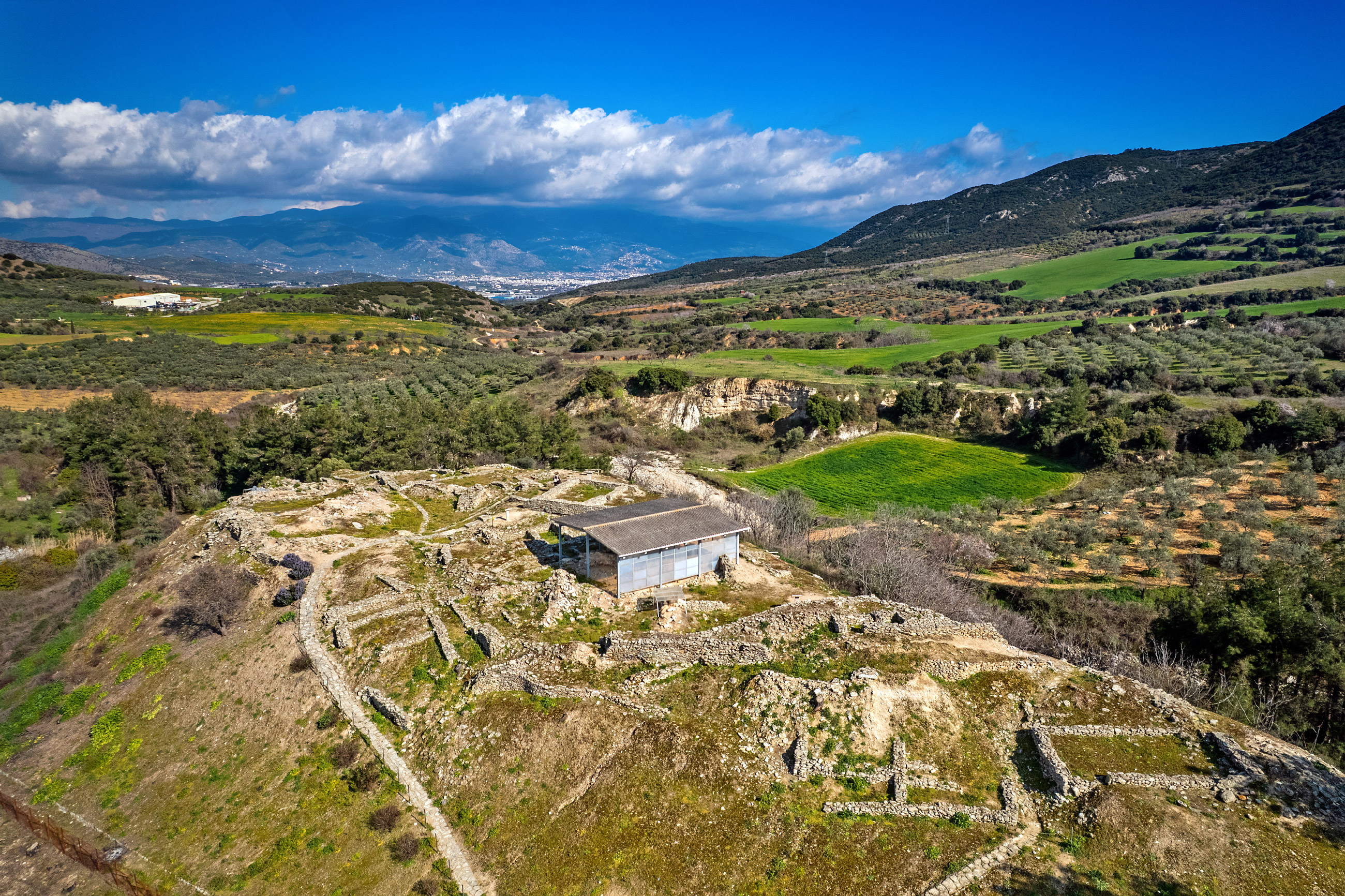 Archaeological Site of Nea Anchialos (Phthiotic Thebes)Just a few kilometers southwest of Volos, in the modern seaside town of Nea Anchialos, lies one of the most important Early Christian archaeological sites in Greece. This is where Phthiotic Thebes flourished, a city that experienced remarkable prosperity from the 4th until the late 6th century AD, before declining and ultimately being abandoned. The architectural remains are not merely ruins; they narrate the story of a society that combined maritime trade with religious authority and artistic creation. The site offers visitors a comprehensive picture of urban life in Late Antiquity, set against a landscape where the waters of the Pagasetic Gulf serve as a timeless backdrop.A prominent place within the archaeological site is held by the Early Christian basilicas, the agora, and the Episcopal Complex.Archaeological Site of DemetriasIn a strategic position at the innermost part of the Pagasetic Gulf stretches the archaeological site of Demetrias, one of the most significant Hellenistic cities of Thessaly. It was founded in 294 BC by the Macedonian king Demetrios I Poliorketes, one of the successors of Alexander the Great. This is not a compact, fully restored site, but rather an extensive ancient city that requires time and imagination from the visitor.Its most recognizable monument is the imposing ancient theatre of the 3rd century BC, overlooking the Pagasetic Gulf and the city of Volos. Image Archaeological Site of DiminiThe Neolithic settlement of Dimini is located just 5 km from Volos. It was inhabited from the end of the 5th millennium BC until the end of the Bronze Age. The architectural remains spread across the hill provide insight into an organized Neolithic community distinguished by a unique architectural feature: six stone-built enclosure walls constructed in pairs around the settlement.To the southeast of the hill with the Neolithic ruins, an important Mycenaean settlement was uncovered. So far, eight independent private houses have been revealed, along with the foundations of a large Mycenaean megaron and two tholos tombs. Image Archaeological Site of SeskloThe archaeological site of Sesklo, near the village of the same name, is one of the most significant prehistoric settlements not only in Greece but in all of Europe. It is often referred to as the “Metropolis” of Neolithic Culture. It was founded in the 7th millennium BC, making it one of the oldest known inhabited settlements in Europe, while its peak period is placed in the 5th millennium BC. The term “Sesklo culture” also originates from here, describing an entire cultural phenomenon of the Neolithic era, characterized by distinctive features such as the development of ceramic decoration and the urban organization of the settlement. Image Archaeological Site of PheraePherae was one of the most important ancient cities of Thessaly and played a decisive role in political and military history from the Archaic through the Roman Period. Ruins dating from the 15th to the 4th century BC have been preserved. The site does not display the monumental density of other major centers, as some of the remains lie within the urban fabric of modern Velestino, while others are found on the outskirts of the town. Among the most important monuments are the Hyperian Spring, tholos tombs, the Temple of Zeus Thaulios, and the fortifications of the ancient acropolis. Image *The most significant finds from these archaeological sites are exhibited at the Athanassakeion Archaeological Museum of Volos. Related TagsVOLOS - Timeless port,WESTERN MAGNESIA - Between Titans and Centaurs,PELION - A Four Season Dream,