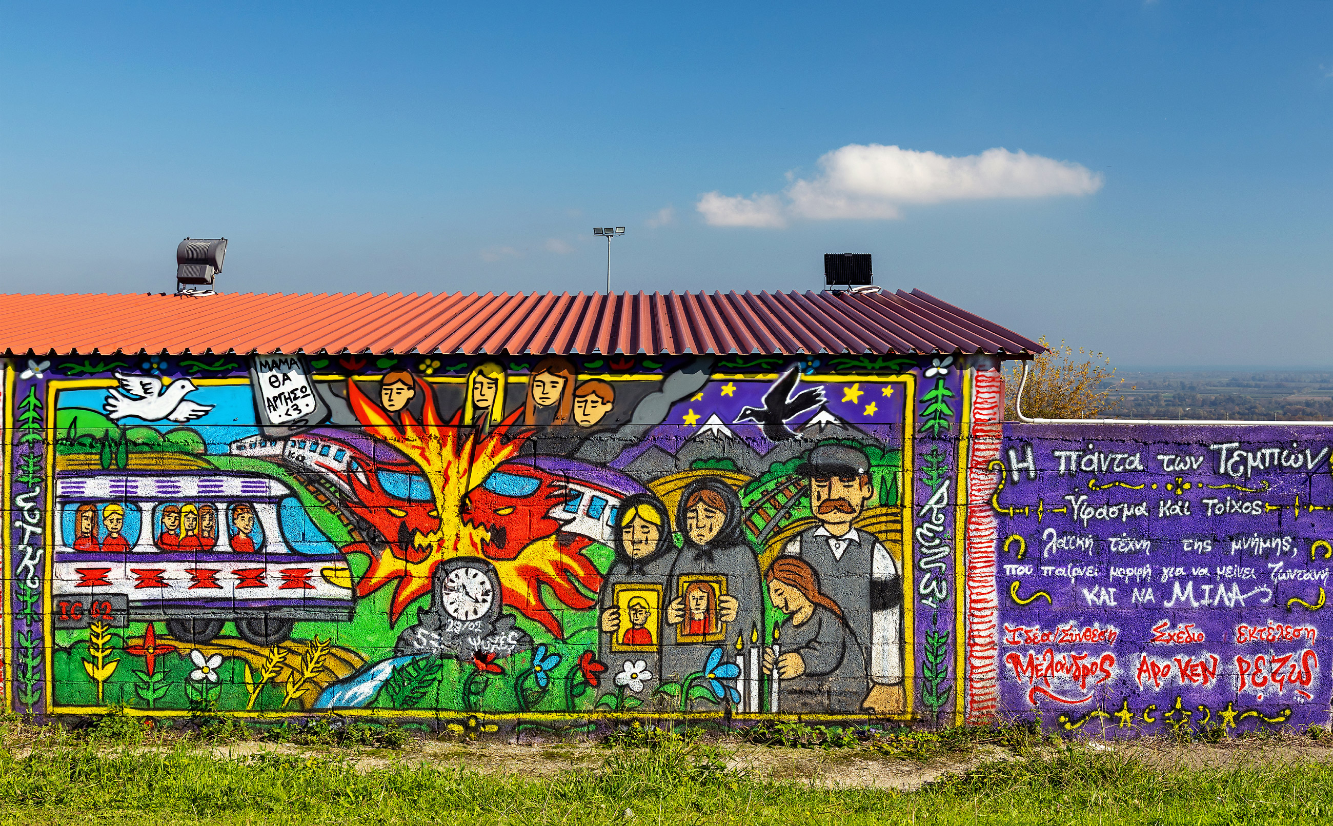 Η “Πάντα των Τεμπών” στον ΠυργετόΣτον Πυργετό Λάρισας, στο γήπεδο του χωριού, ένα γκράφιτι ξεχωρίζει όχι μόνο για το καλλιτεχνικό του αποτύπωμα, αλλά και για το βαθύ του μήνυμα. Πρόκειται για την «Πάντα των Τεμπών», ένα μεγάλο εικαστικό έργο που δημιουργήθηκε το καλοκαίρι του 2025 στο πλαίσιο του 2ου Φεστιβάλ Κάτω Ολύμπου και είναι αφιερωμένο στις 57 ψυχές που χάθηκαν στο σιδηροδρομικό δυστύχημα των Τεμπών.