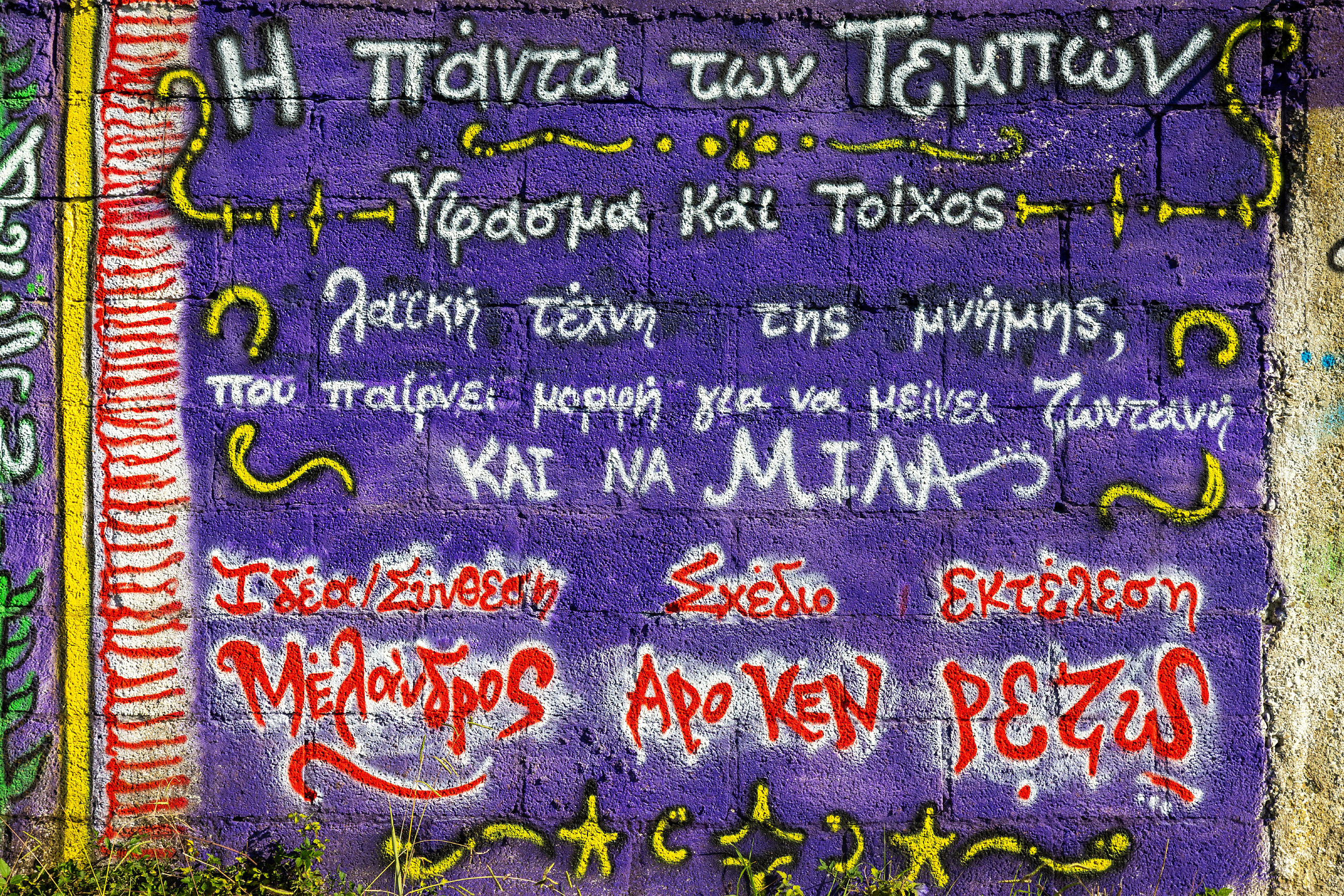 Το έργο αντλεί έμπνευση από την ελληνική λαϊκή παράδοση των παντών — των κεντημένων υφασμάτων που στόλιζαν παλαιότερα τα σπίτια, απεικονίζοντας σκηνές της καθημερινότητας, της φύσης, αλλά και μύθους ή συμβολισμούς. Με σεβασμό σε αυτή την παράδοση, οι δημιουργοί της τοιχογραφίας (η ομάδα ΕΤΚ – Εκδόσεις του Κάμπου- Project ΙππόΚαμπος) «μεταφράζουν» τη λαϊκή τέχνη στη γλώσσα του δρόμου: αντί για κλωστές, χρησιμοποιούν σπρέι· αντί για ύφασμα, έναν τοίχο· ενώ αντί για καθημερινές σκηνές, αφηγούνται μια από τις πιο οδυνηρές στιγμές της σύγχρονης Ελλάδας. Η «Πάντα των Τεμπών» δεν είναι απλώς ένα ακόμη αξιοθέατο της περιοχής. Είναι ένα σημείο που συνδέει την τέχνη με τη μνήμη, το σήμερα με την παράδοση, και τις τοπικές κοινότητες με μια πανελλήνια τραγωδία. Για τον επισκέπτη, αποτελεί μια συγκινητική εμπειρία, ένα έργο που μιλά χωρίς λόγια – όπως ακριβώς μιλούσαν και οι παλιές πάντες στα σπίτια των γιαγιάδων μας.Το έργο και η αφήγησή τουΗ τοιχογραφία είναι χωρισμένη σε τρία μέρη, που λειτουργούν σαν κεφάλαια μιας υφαντής ιστορίας: Το Ταξίδι, Η Σύγκρουση, Το Πένθος.Image Αριστερό μέρος – Το ΤαξίδιΟ γαλάζιος ουρανός και ένα λευκό περιστέρι ανοίγουν την αφήγηση. Το τρένο IC62 εμφανίζεται γεμάτο επιβάτες, σε μια φωτεινή, θεσσαλική εξοχή. Ανάμεσά τους και ένα στιγμιότυπο που σημάδεψε τις μαρτυρίες: το sms «ΜΑΜΑ ΘΑ ΑΡΓΗΣΩ», μήνυμα που στάλθηκε λίγα δευτερόλεπτα πριν από τη σύγκρουση.Image Κεντρικό μέρος – Η ΣύγκρουσηΕδώ η εικόνα μετατρέπεται σε μύθο. Οι δύο μηχανές σχηματίζουν κεφάλια δράκων, σαν ήρωες από προφορικές παραδόσεις, ενώ οι φλόγες δημιουργούν συμμετρικά μοτίβα που θυμίζουν εικόνισμα. Στον καπνό εμφανίζονται ανέκφραστα πρόσωπα, οι ψυχές των θυμάτων. Το ρολόι-μνήμα δείχνει την ώρα της τραγωδίας και γράφει «57 ΨΥΧΕΣ», ενώ από κάτω κυλά ο Πηνειός.Image Δεξί μέρος – Το ΠένθοςΟ ουρανός σκοτεινιάζει. Ένα μαύρο πουλί πετά ανάμεσα στα άστρα, με φόντο τον Όλυμπο και τον Κίσσαβο. Μαυροφορεμένες γυναίκες κι ένας άντρας με μαύρο περιβραχιόνιο κρατούν εικόνες των θυμάτων, ενώ ένα κορίτσι ανάβει ένα κερί. Όλοι τους είναι δακρυσμένοι. Δίπλα της, ένα λουλούδι ρίχνει ένα πέταλο – κι αυτό μαύρο, σαν δάκρυ. Όλο το σύμπαν μοιάζει να θρηνεί.Γύρω από όλη τη σκηνή, λουλουδένιες μπορντούρες και γεωμετρικά μοτίβα πλαισιώνουν την τοιχογραφία, θυμίζοντας τις πραγματικές κεντητές πάντες των ελληνικών σπιτιών.Image Ένα μνημείο λαϊκής τέχνης και μνήμηςΗ «Πάντα των Τεμπών» λειτουργεί σήμερα ως ένα φορτισμένο μνημείο, ορατό σε κάθε περαστικό. Επισκέπτες από την περιοχή αλλά και από μακριά σταματούν για να το φωτογραφίσουν, να σταθούν για λίγο και να συλλογιστούν. Το έργο δεν είναι απλώς ένα γκράφιτι· είναι ένας λαϊκός τρόπος μνήμης, μια σύγχρονη υφάντρα που αποτυπώνει τον συλλογικό πόνο και μετατρέπει τον τοίχο σε ζωντανή αφήγηση.Όπως αναγράφεται και στην αφιέρωση:«Η Πάντα των Τεμπών. Ύφασμα και τοίχος, λαϊκή τέχνη της μνήμης, που παίρνει μορφή για να μείνει ζωντανή και να μιλά».Οι συντελεστέςΙδέα / Σύνθεση: Melandros – Εκδόσεις του ΚάμπουΣχέδιο: Apo Ken (@apoken)Επιστημονική καθοδήγηση: Φανή Καλοκαιρινού (@fanikalokairinou)Εκτέλεση: ΡεζώΣχετικά TagsΤΕΜΠΗ - Η Μαγική κοιλάδα,ΟΛΥΜΠΟΣ - Η Ήρεμη Δύναμη της Θεσσαλίας,