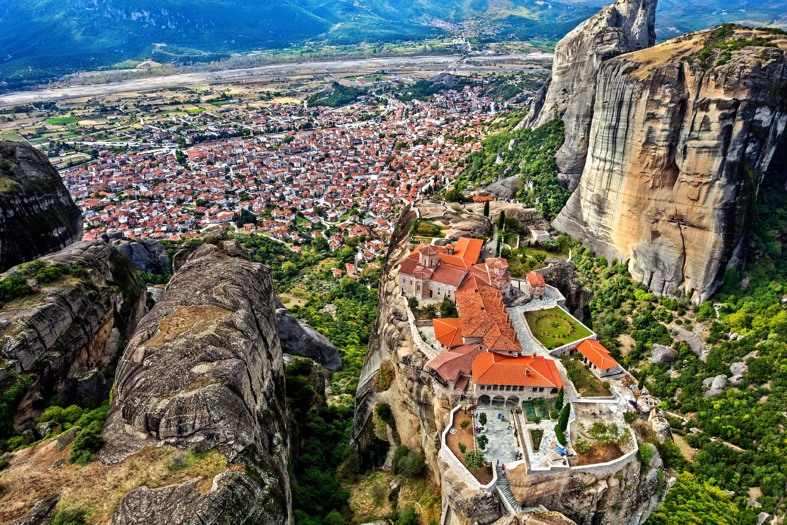 Μονή Αγίας Τριάδας - Η "δυσπρόσιτη"Είναι κτισμένη πάνω σε ένα πανύψηλο, επιβλητικό βράχο, προσφέρει εκπληκτική θέα στην Καλαμπάκα και σε μερικούς από τους πιο εντυπωσιακούς «πύργους» των Μετεώρων.